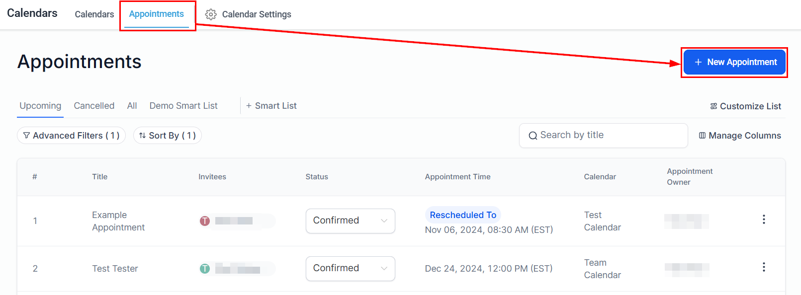 Begin by selecting the New Appointment button within the Appointments section of your account.