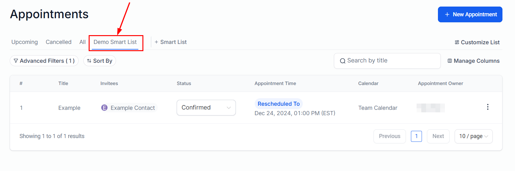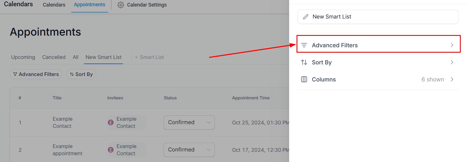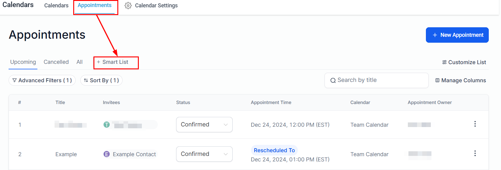 These filters enable you to customize your Smart List further, so you can efficiently locate and manage the specific appointments that meet your criteria.