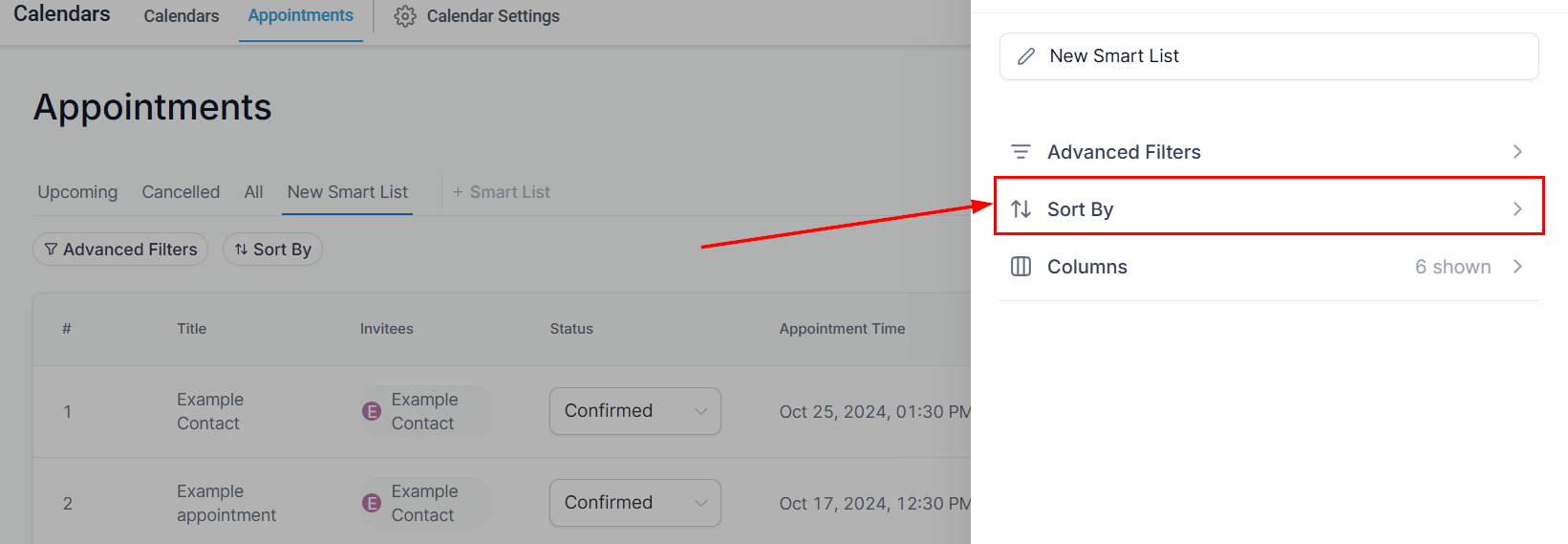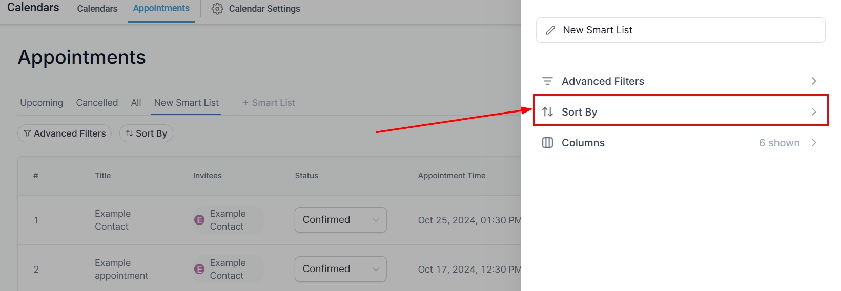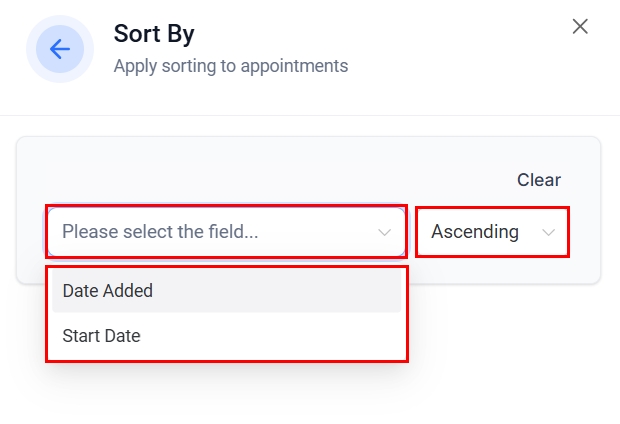 With the Sort By section, you can prioritize your tasks effectively by sorting appointments by the date they were added or by their start date.