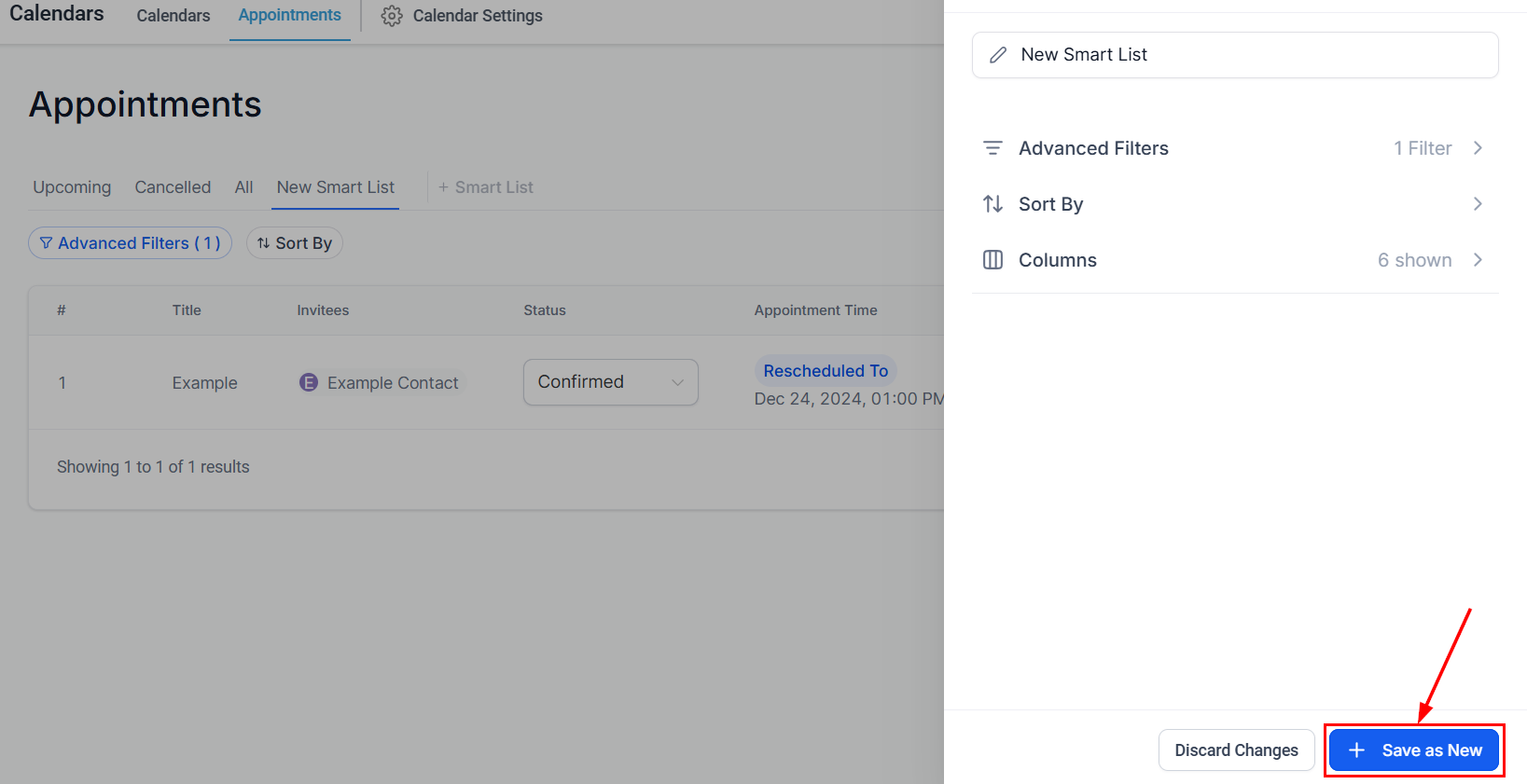When you are satisfied with your selections, click the Save as New button to save your customized Smart List.