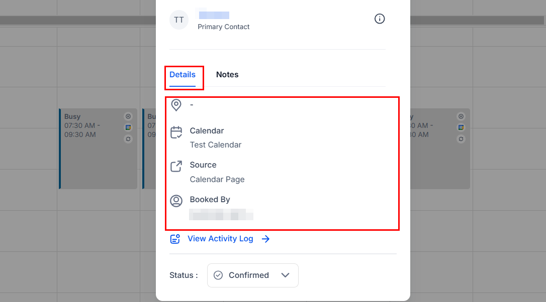 Booked By: This will show who booked the appointment, if the contact, a team member, automation, etc.
