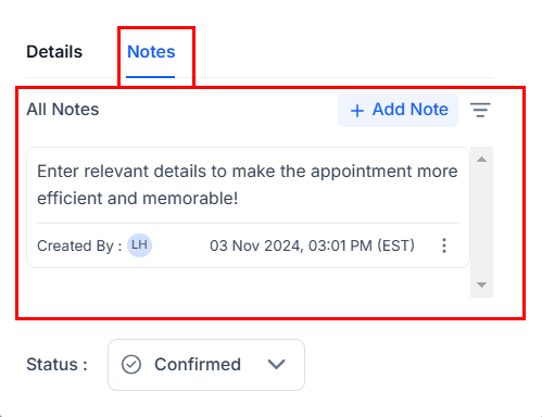 The Appointment Notes section displays essential notes and comments associated with each appointment, offering a centralized area for important details and insights.