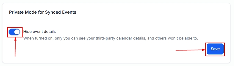 Toggle this on to see your third-party calendar details. Click on Save to complete.