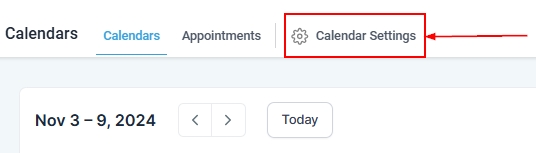 To get started, navigate to the calendar section, and click on Calendar Settings.