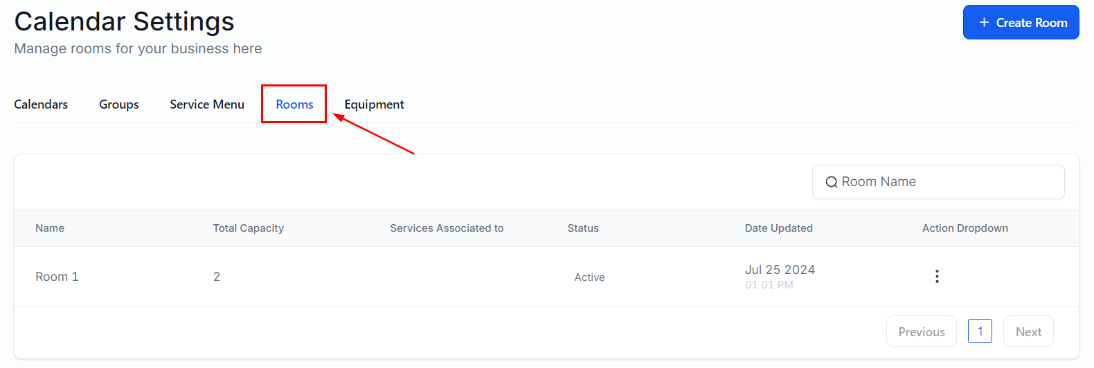 Rooms represent any location needed to provide the service you're offering. Such as a massage room, salon chair, or workout area. In this section, you can add and manage such locations, which the system will use to help you organize their availability when booking appointments.