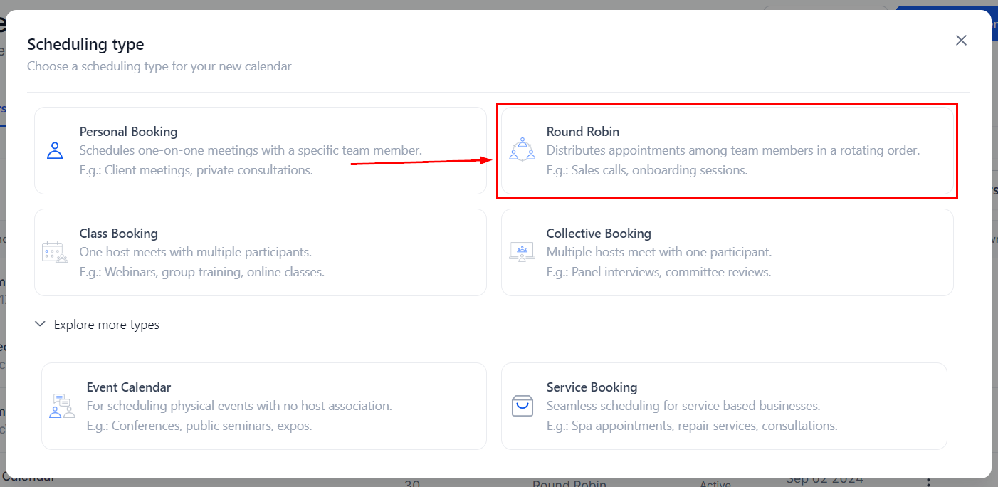 Round-robin calendars distribute appointments across several team members, ensuring that the appointment passes to the available one if a user is unavailable. When using this calendar users are placed in a ring and assigned to appointments sequentially. If you have a team taking meetings and want to distribute them equally this calendar is for you.