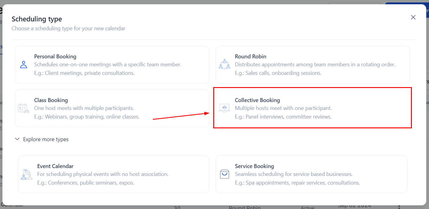 Collective Booking is a feature that enables scheduling meetings involving multiple team members simultaneously. It integrates individual team members' availability into a shared calendar, allowing for unified scheduling. This feature facilitates seamless group interactions, perfect for collaborative endeavors like sales calls, technical support, or group interviews.