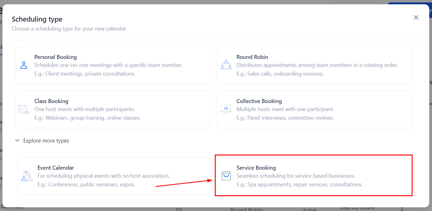 A Service Calendar is a tailored calendar created to simplify the scheduling process of service-based businesses. In this type, users can create different services they offer, group them by categories, and display them in one scheduling link. Additionally, they allow you to list your services on Google My Business for easy appointment scheduling.