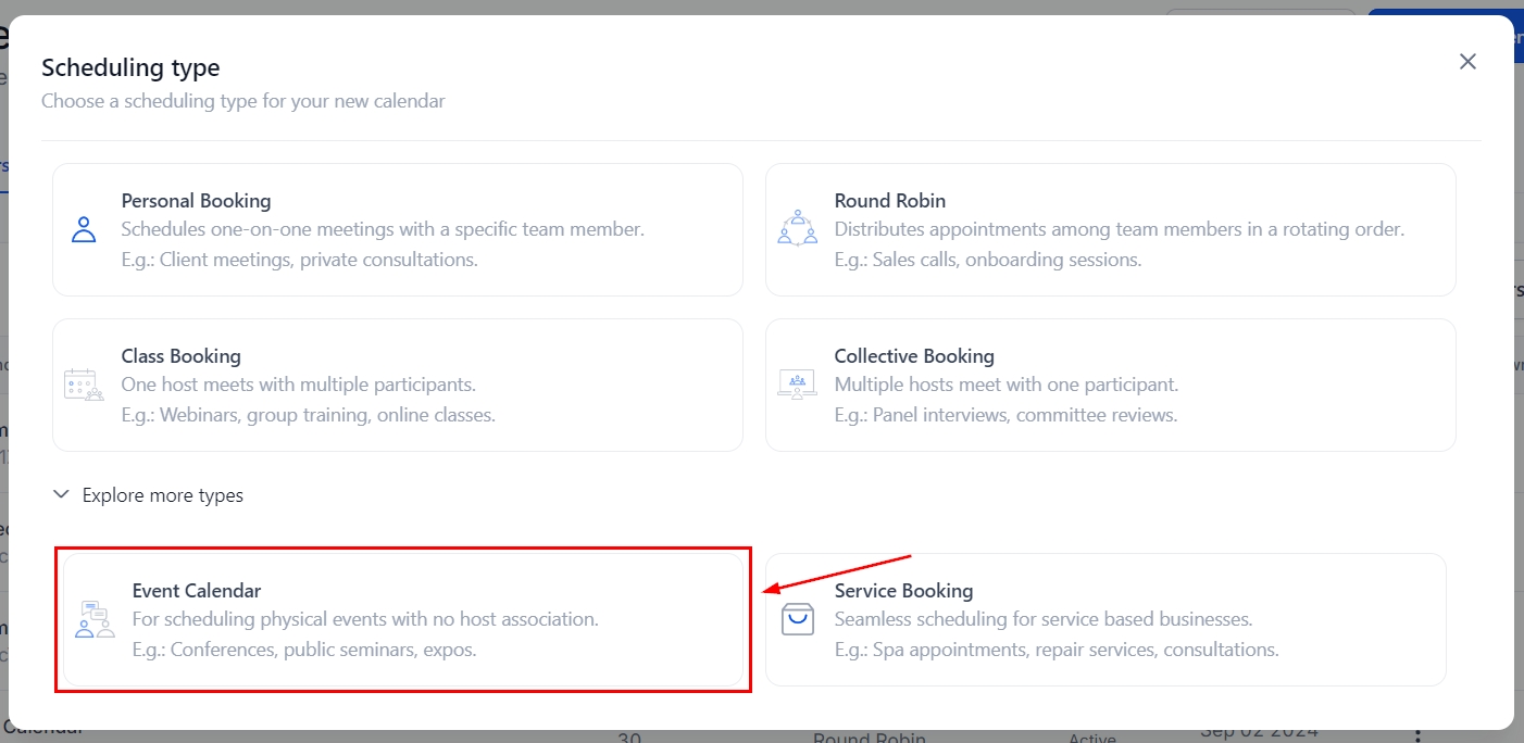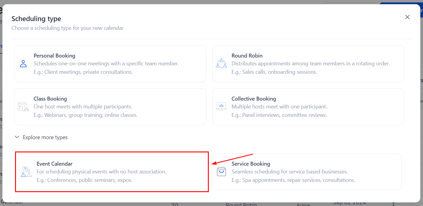 Event Calendars allow you to create and add physical events where no team member, in particular, is required for the event to occur, such as public seminars or expos. They simplify the registration process for clients and your business by allowing you to handle in-person events from your CRM.
