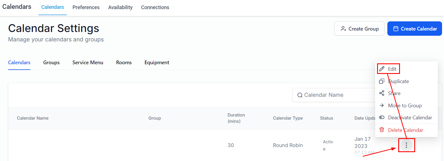 Click on the three dots icon of your appointment calendar, then click edit.