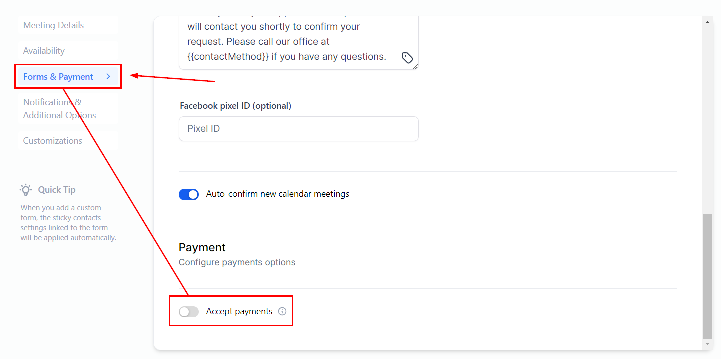Customers Unable to See Payment Option: Check that the payment option is enabled for the specific appointment type and that the payment instructions are clear.