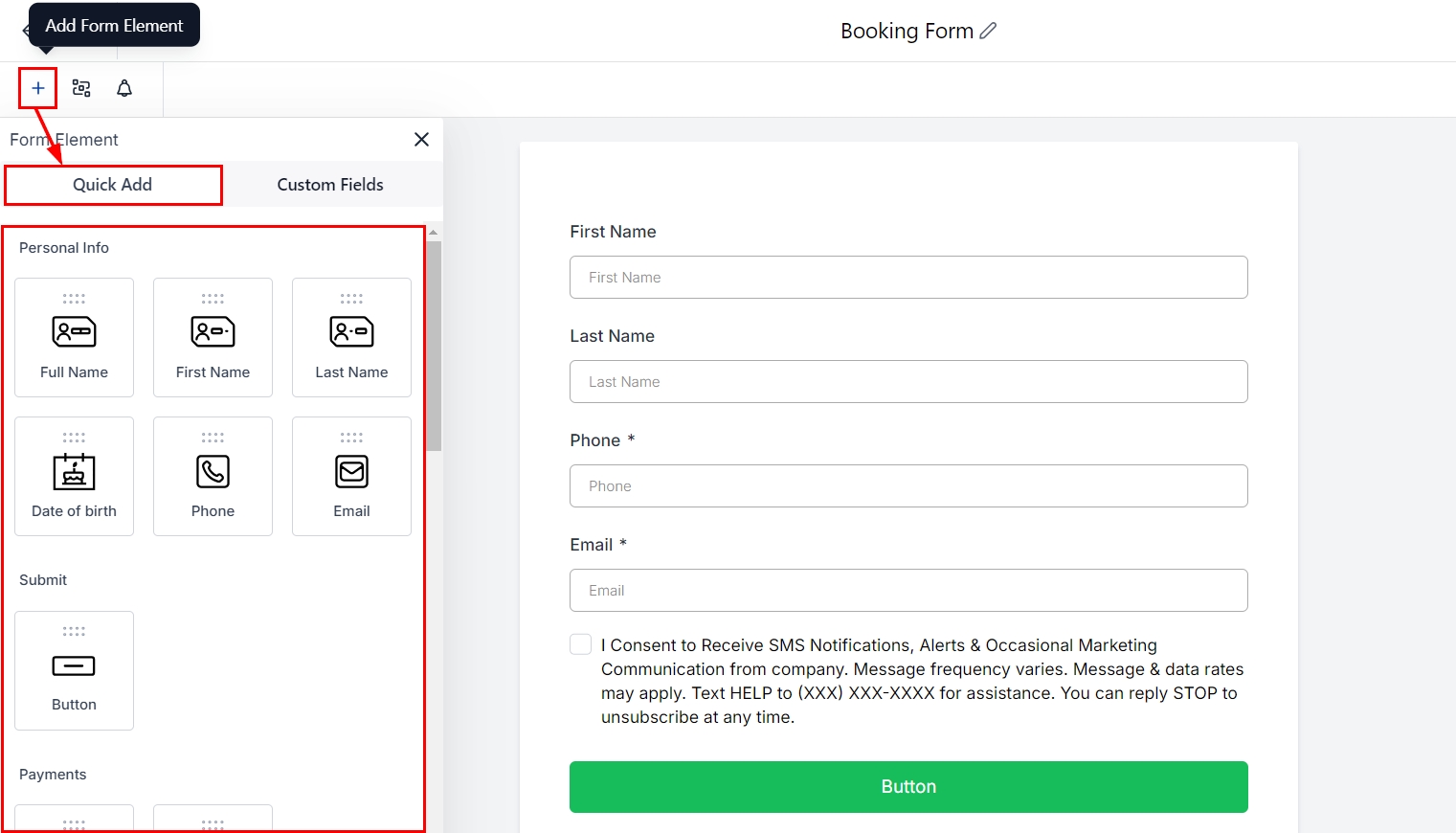 In the 'Forms & Payment' section, choose the form you just created from the dropdown menu.