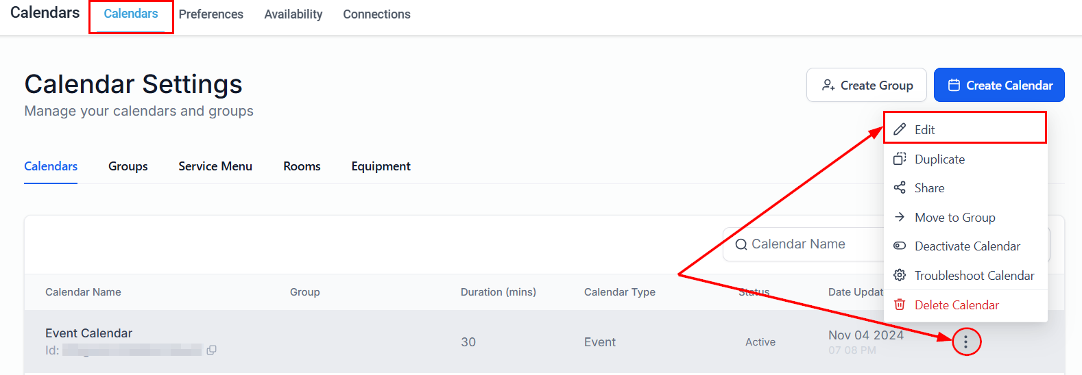 Navigate to Calendar > Calendar Settings, then select the option to edit the desired calendar.