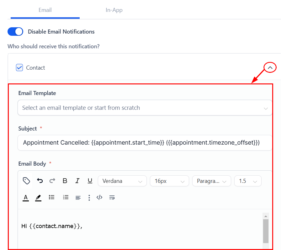 Enable Email Notification by toggling it on and customize the content for different recipients.