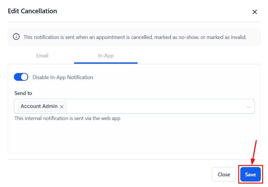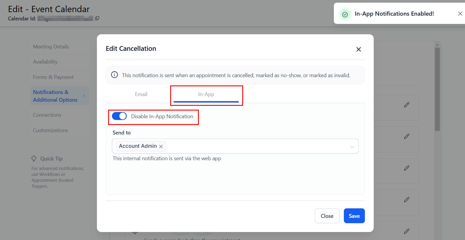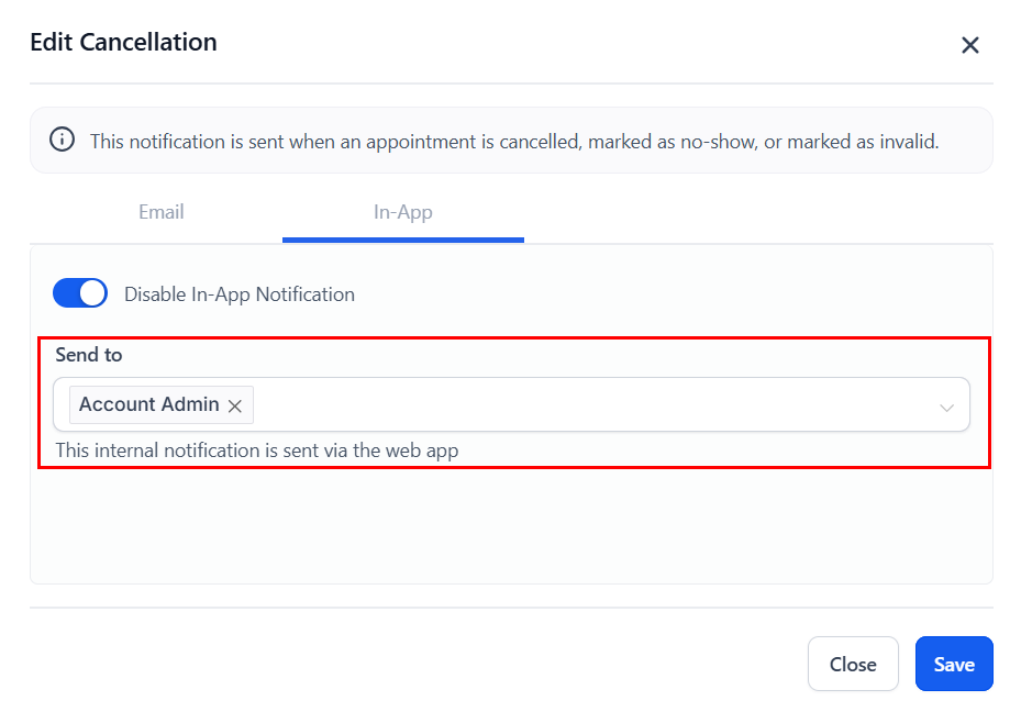 ๐Note: For Event Calendars, the default recipient for in-app notifications is the account admin, while for other calendar types, the assigned user receives them by default.