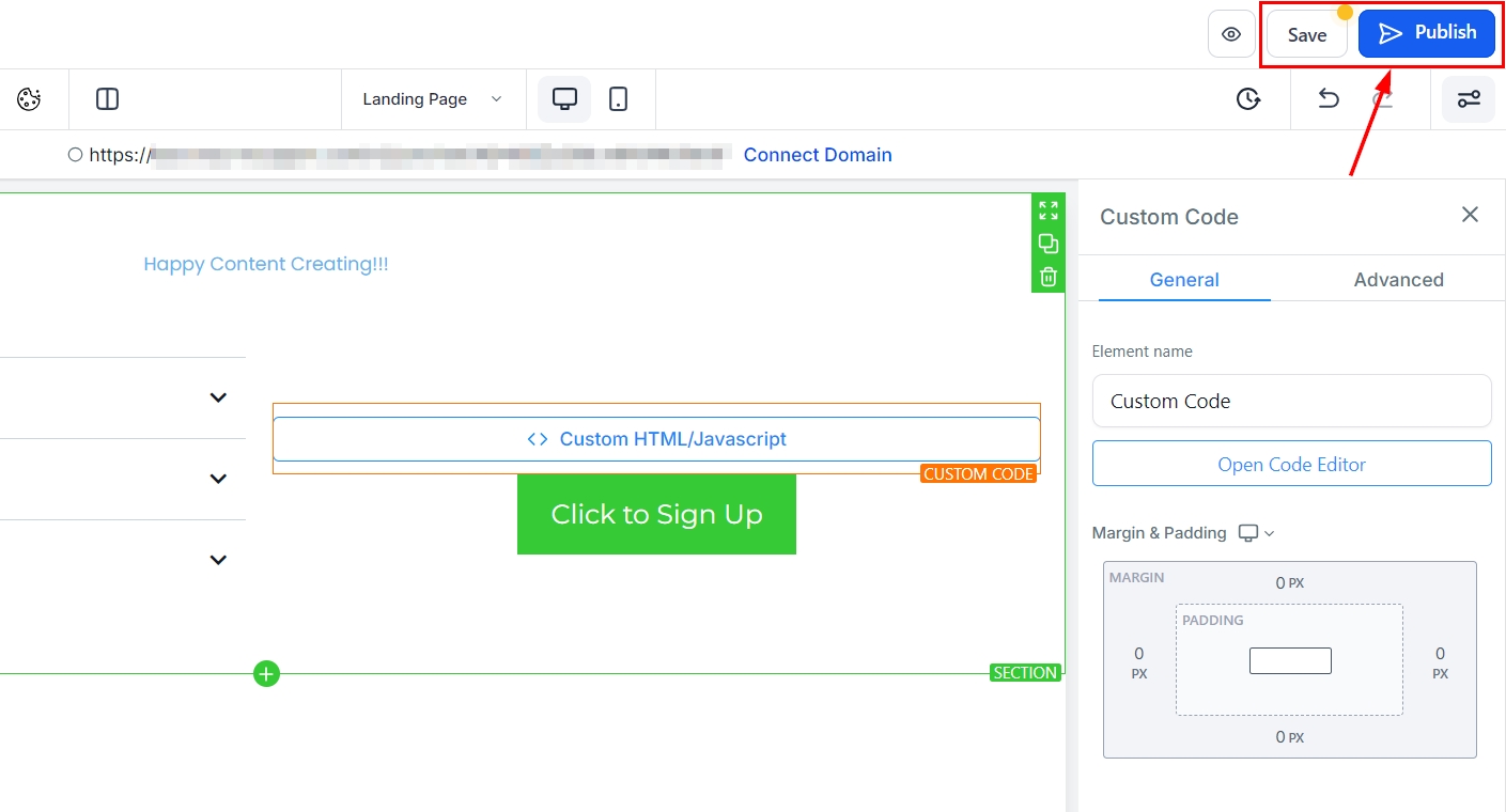 After making all necessary adjustments, be sure to save the page and publish it to make it accessible for live viewing.