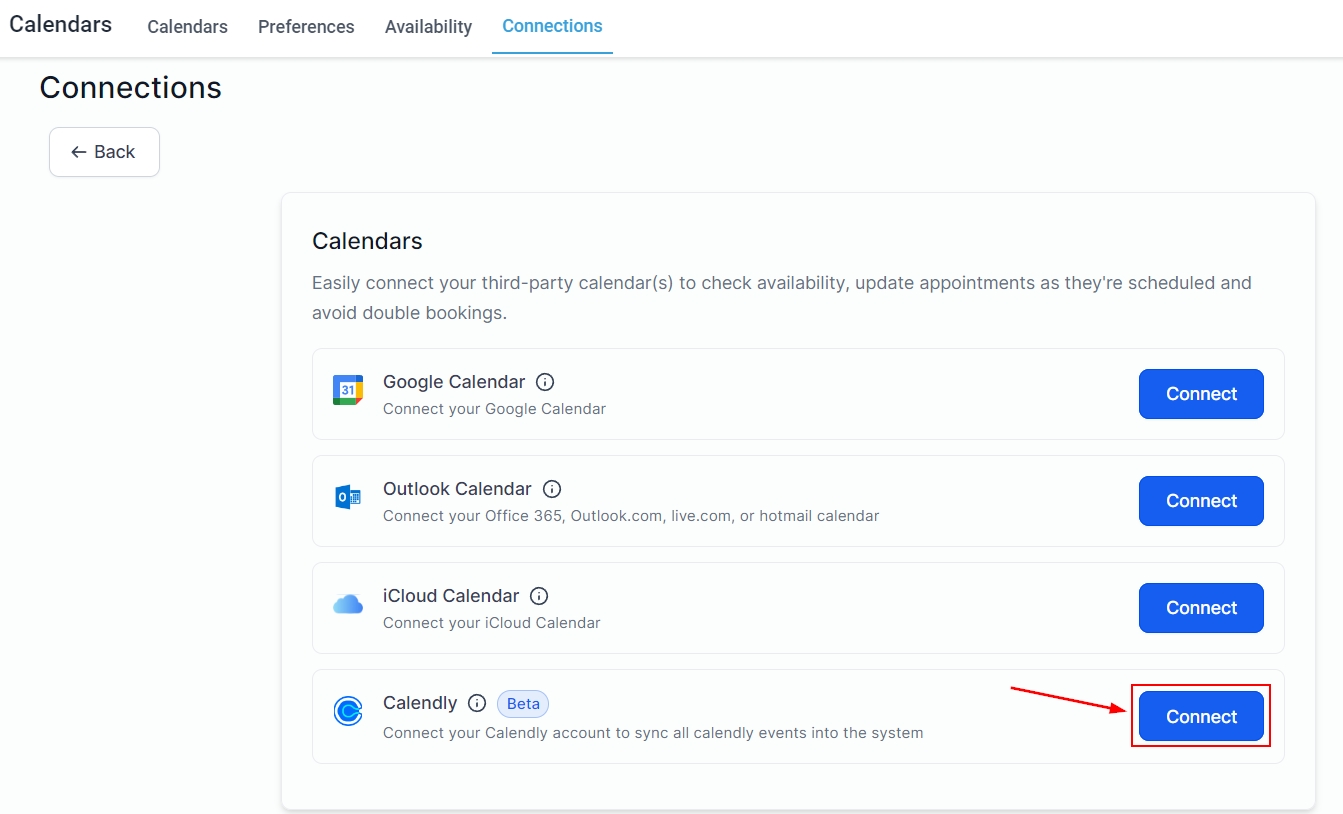 Connecting your Calendly is a unilateral integration, meaning events created in the system will not sync back to Calendly and you cannot edit Calendly events from your CRM. Even when your Calendly account is connected, appointments created before the connection data will not copy over and syncing will occur only for the calendars you have selected.