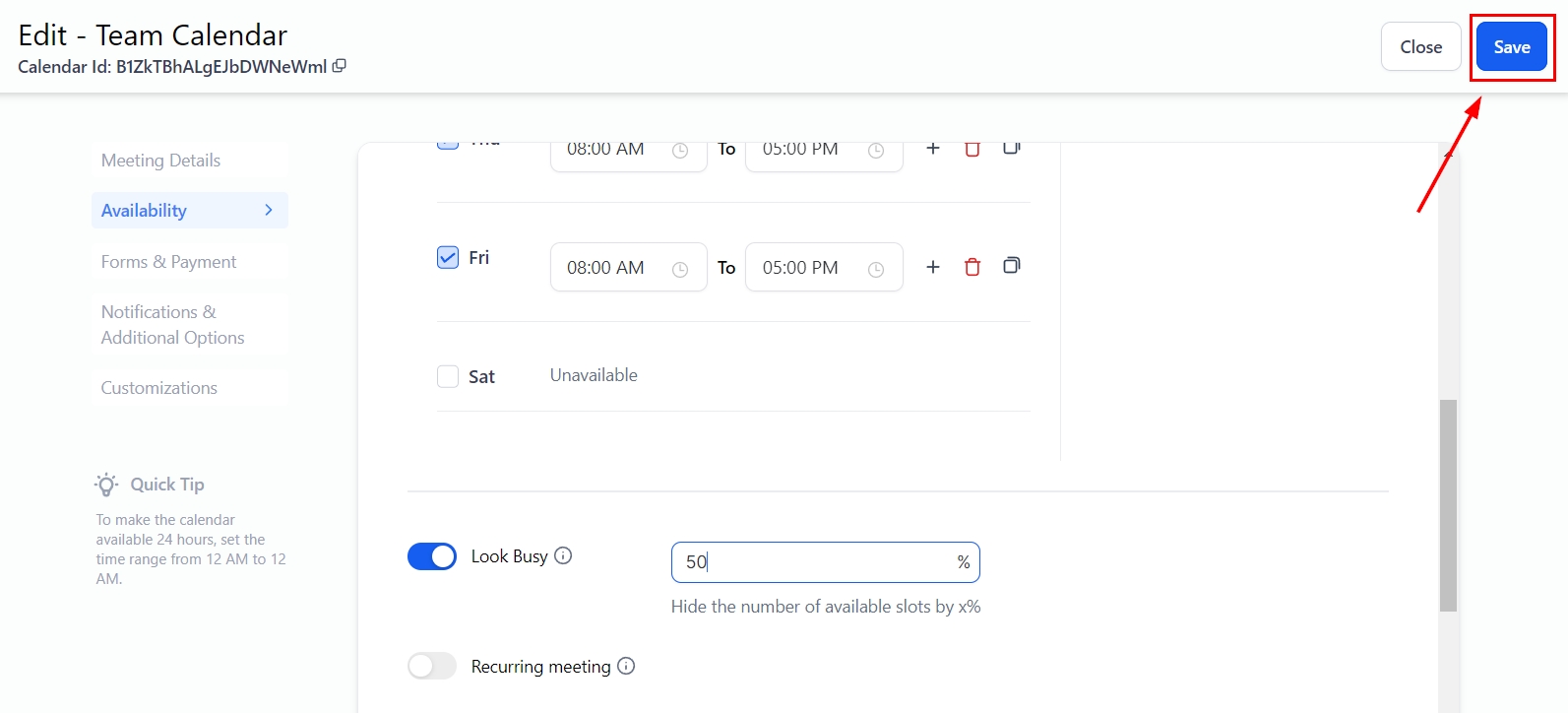 Enabling Look Busy in Calendars will fill out available slots until others are taken, giving you great optics making you appear In Demand, boosting your desirability, and improving your booking rate.