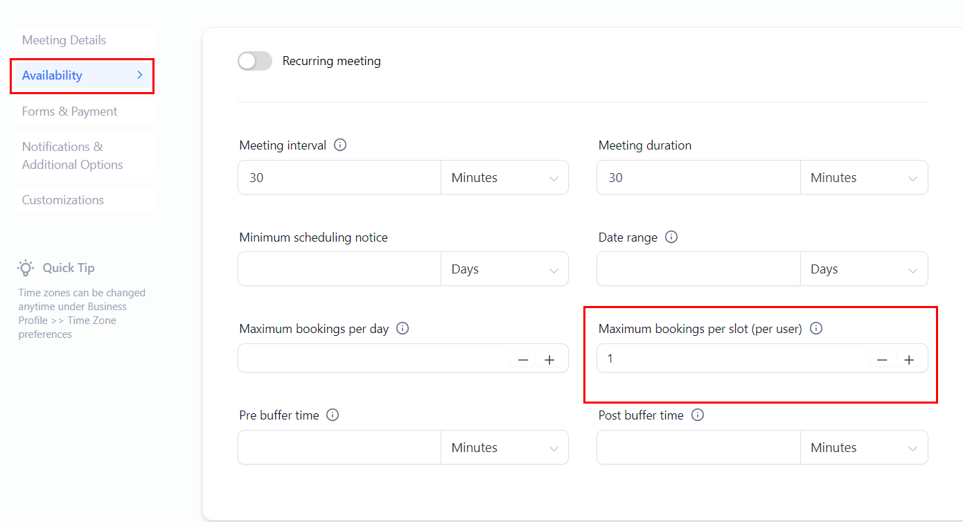 Regularly review and adjust the 'appointments per slot' setting to match your availability preferences.