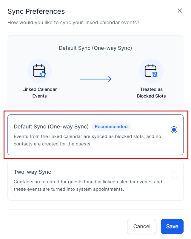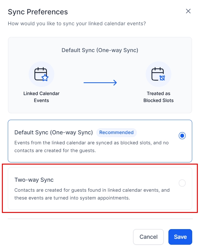 One-way Sync: Ideal for professionals who schedule meetings externally but want to avoid double bookings by reflecting these in the CRM calendar.