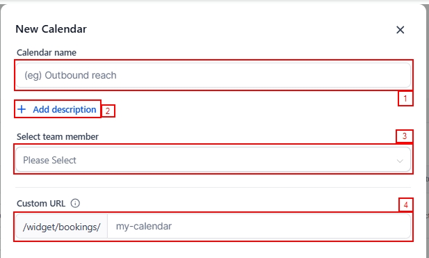 For the calendar name, provide a title for the calendar that accurately reflects its intended purpose. In the description section, clearly outline the purpose and objectives of the appointment, ensuring that all participants understand its significance.