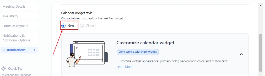 Select between the classic widget and the modern Neo widget.