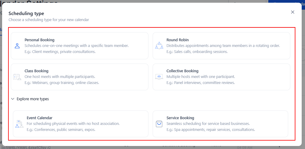 Round Robin: This calendar allows you to add several team members to the same calendar for rotational booking.