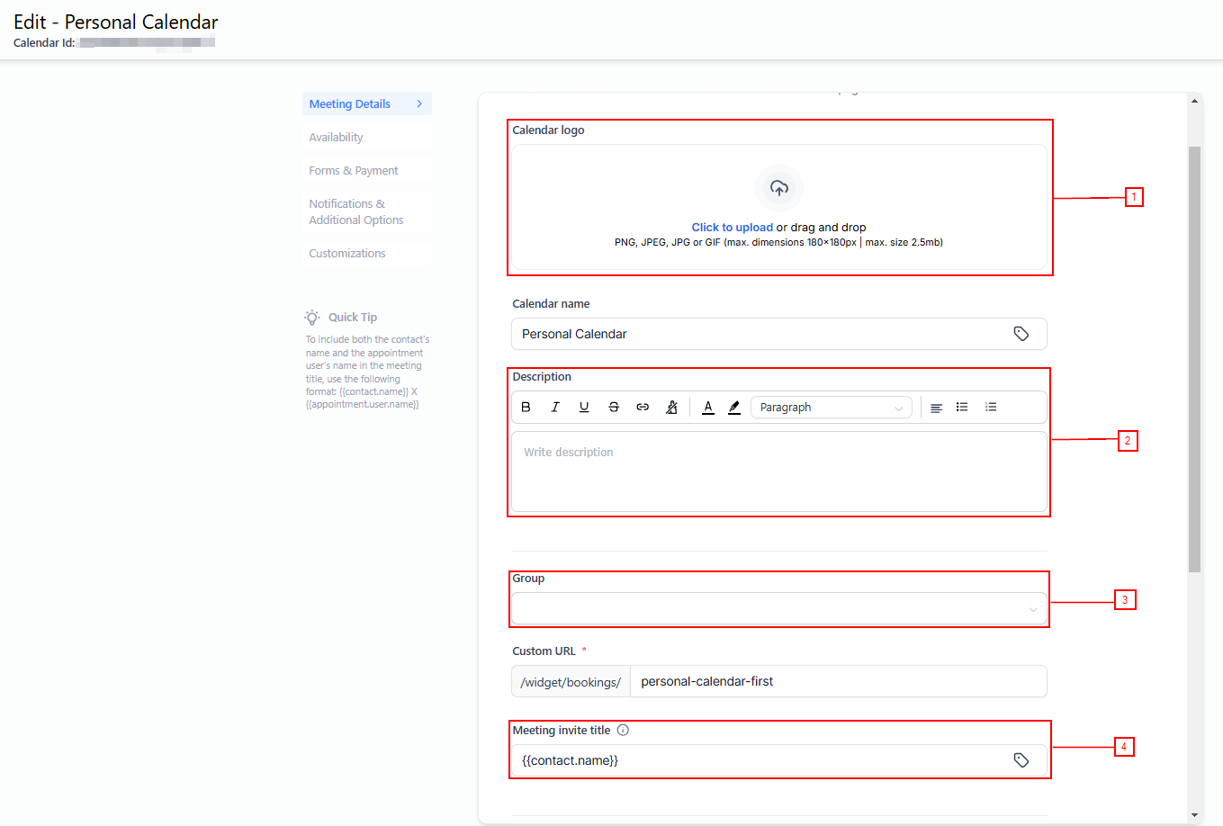 Calendar Name: The name will show why they are scheduling an appointment for leads and customers.