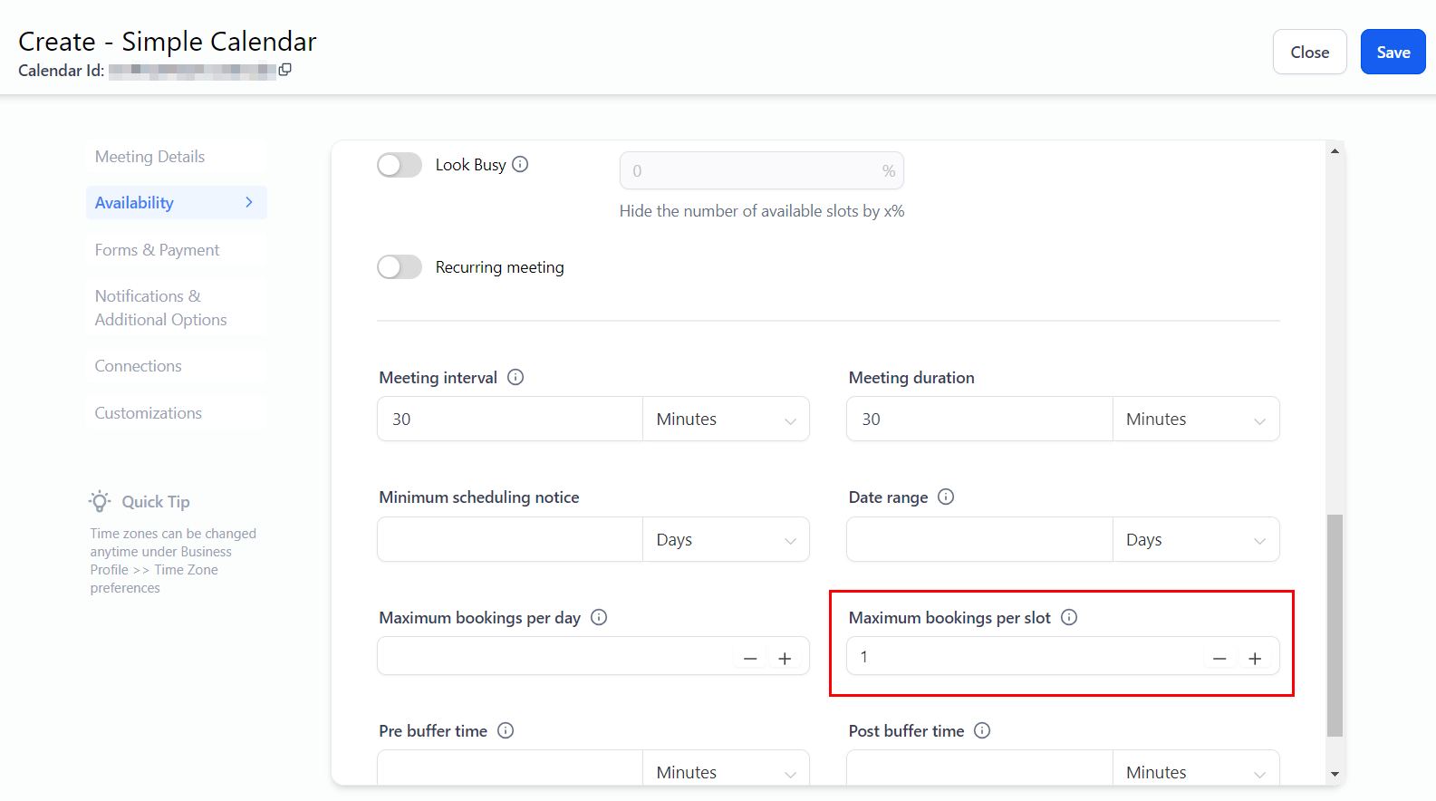 This setting allows you to specify the maximum number of appointments that can be accommodated in a single slot.