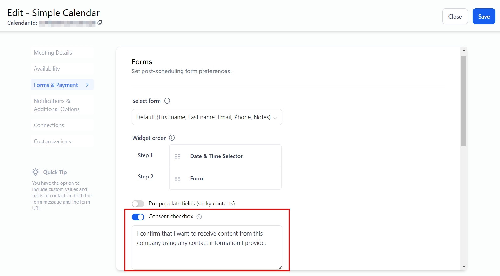 This option enables you to secure consent from clients to be contacted again when they provide their contact information during the appointment booking process.