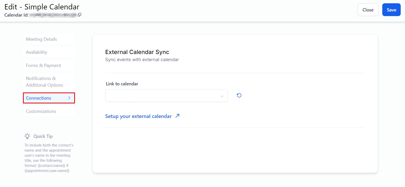 Sync your appointments with external calendars like Google or Outlook. Choose between one-way, two-way, or smart sync based on your needs.