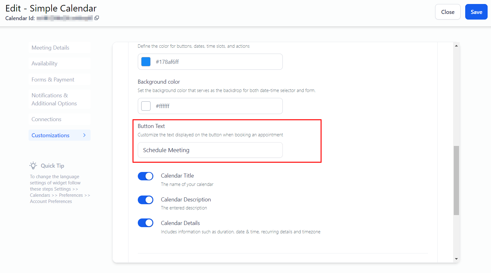 Customize your calendar by adding a cover image, adjusting the style and colors, modifying the button text, and tailoring the displayed information. This level of personalization allows you to align the calendar with your brand and preferences.