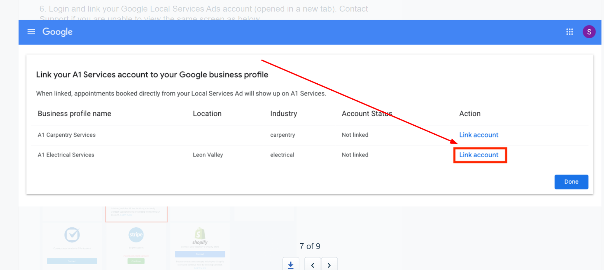 Link your Google LSA account.