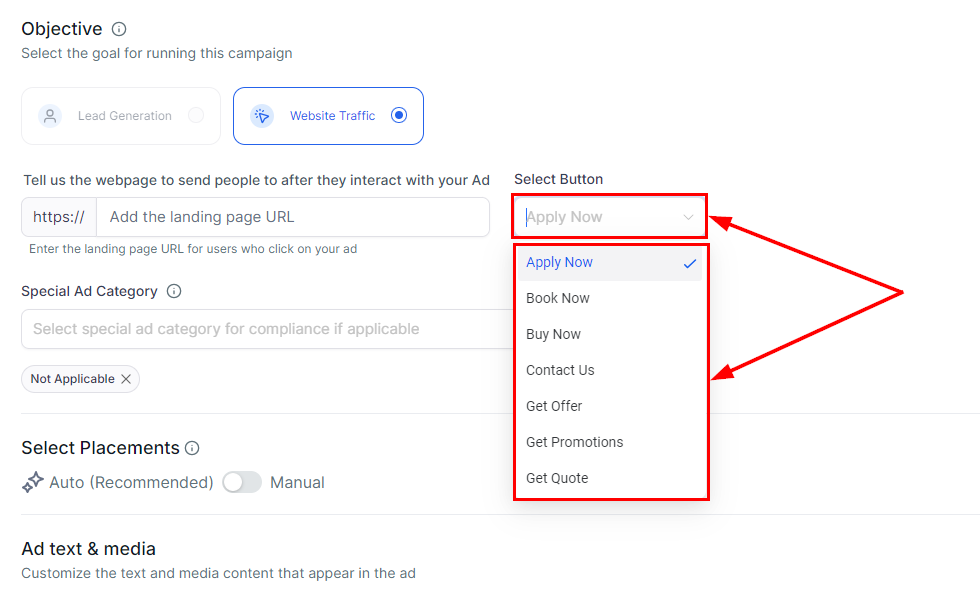 📌 Note: Special considerations apply for campaigns related to employment, housing, credit, politics, and online gaming or gambling.