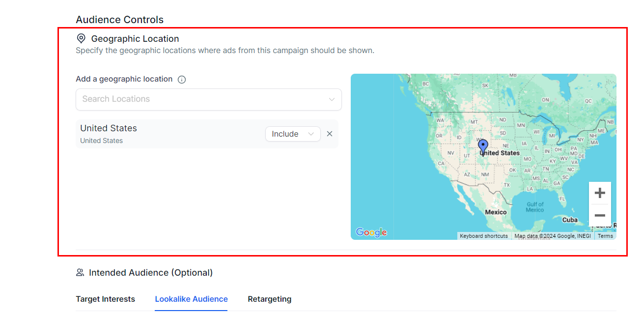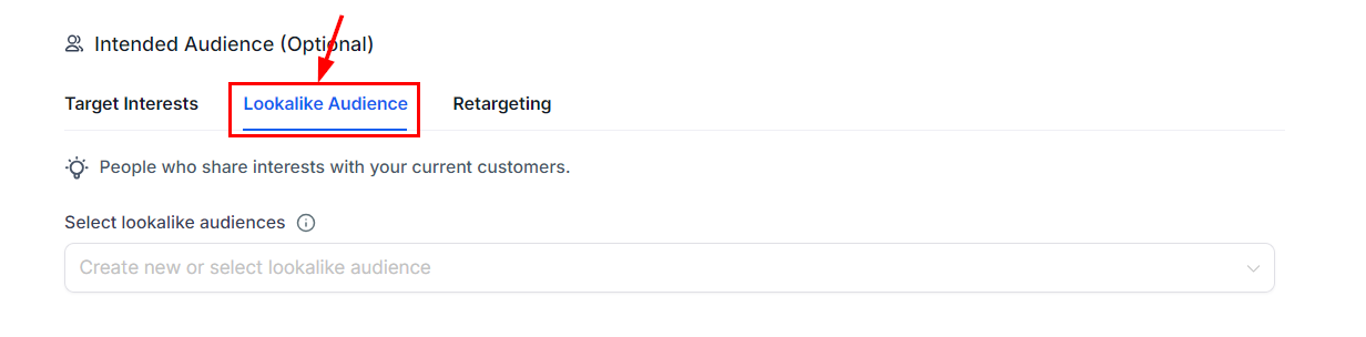 Furthermore, select up to 15 lookalike audiences from the dropdown within the Lookalike Audience section to be used in a campaign as the target audience.