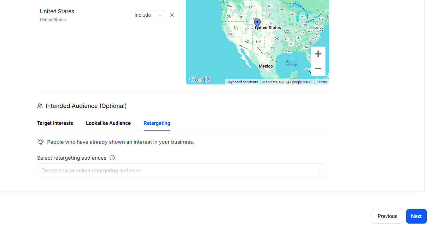 After creating a custom audience, it will appear in the Retargeting Audience dropdown list. It can be used for campaign targeting once its status is ready.