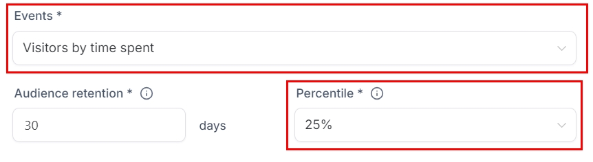 Targets those who have spent the most time on your website, with the option to narrow down further by selecting a specific percentile.