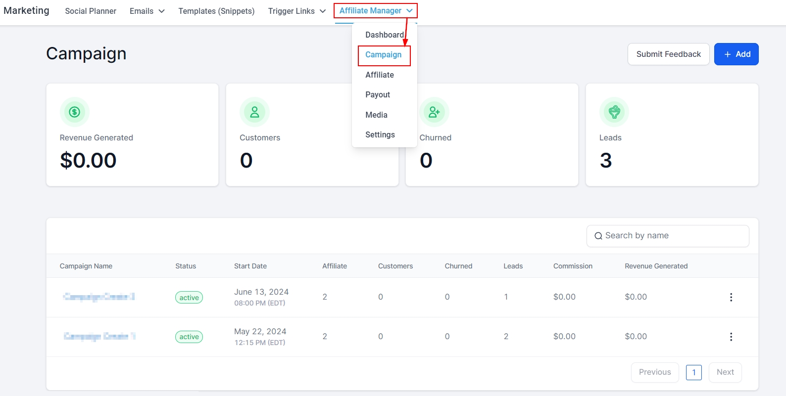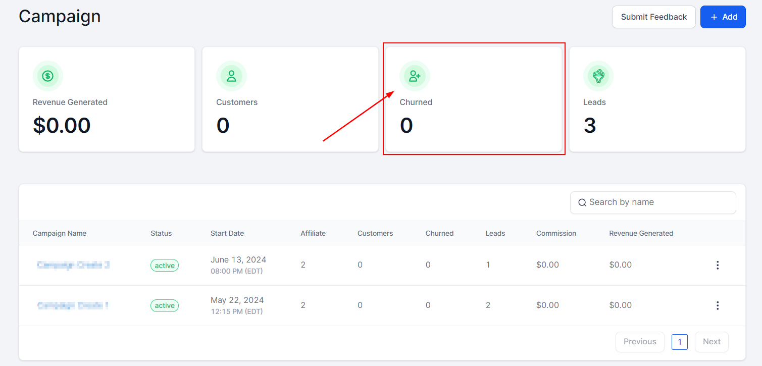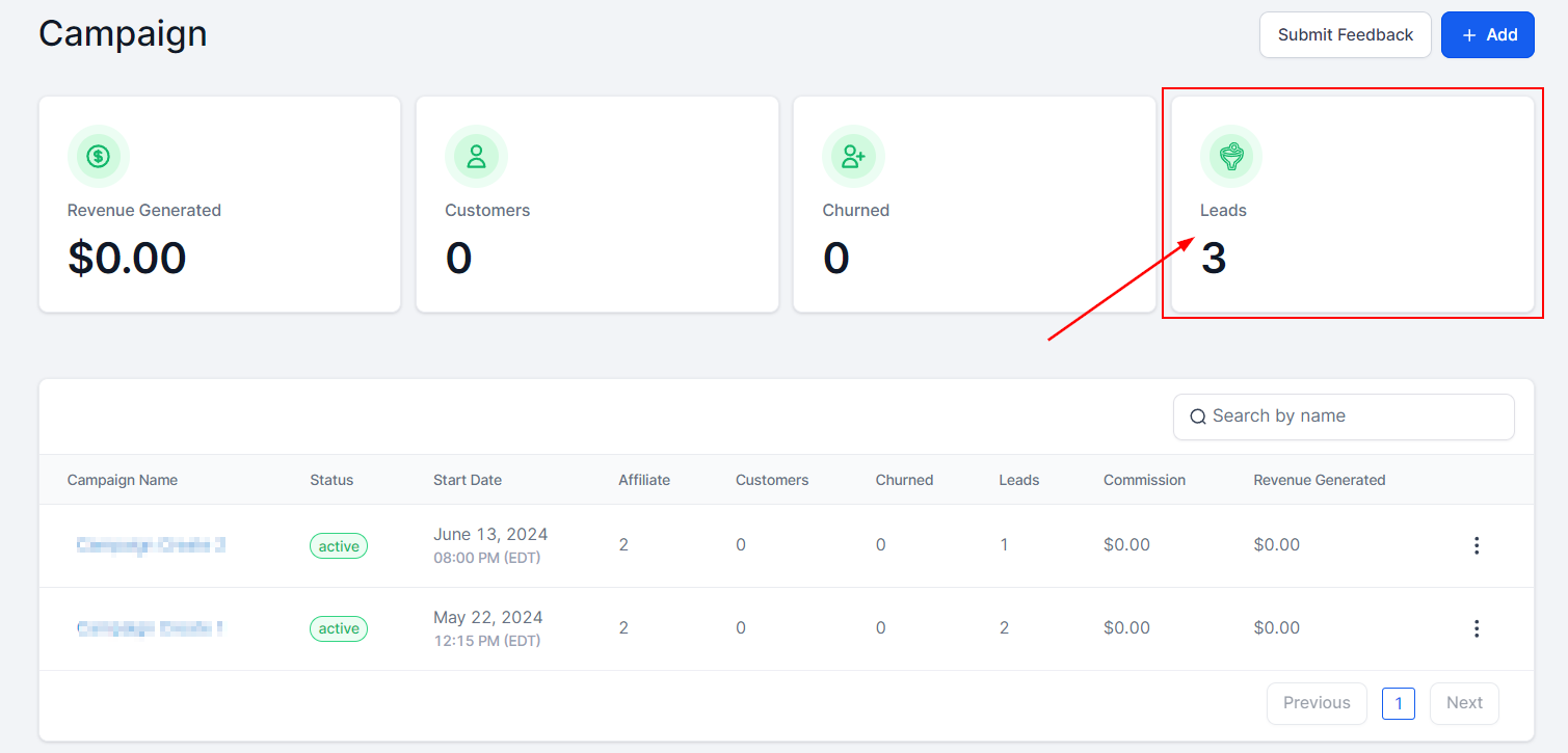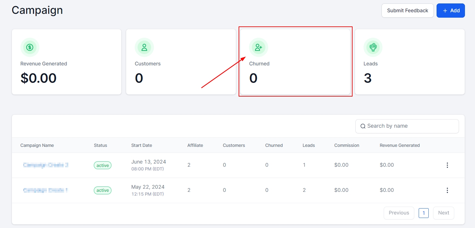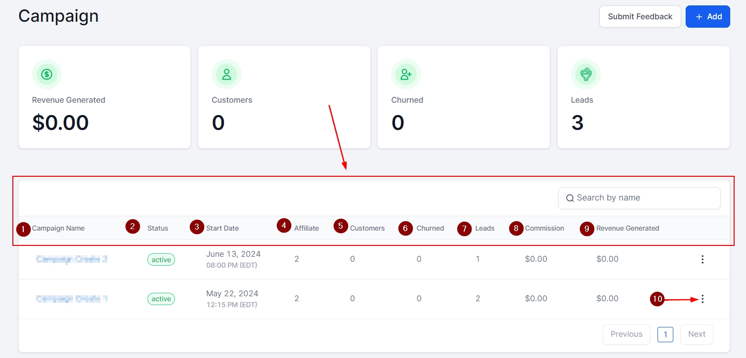 Affiliates: Here you will see the number of affiliates associated with each campaign.