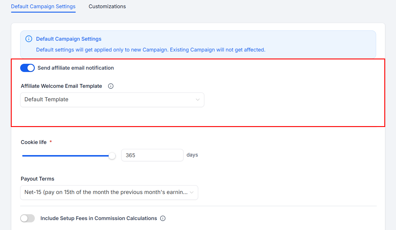 Configure these settings according to your preferences to enhance your affiliate management.