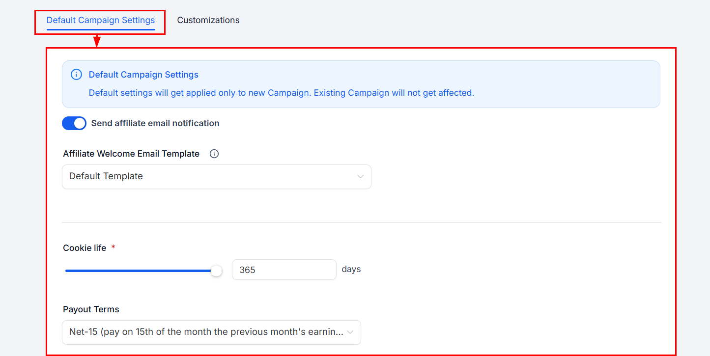 Default Campaign Settings refer to the configurations that will be automatically applied to all new campaigns you create.