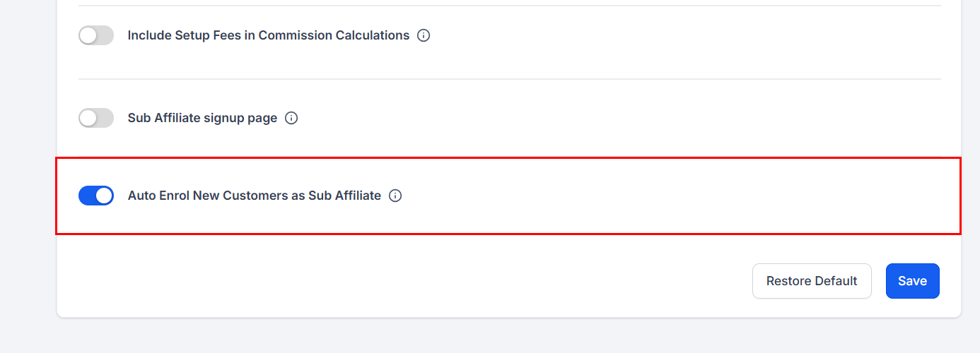 Enable this toggle to grant affiliates the ability to independently share sign-up forms and recruit sub-affiliates.