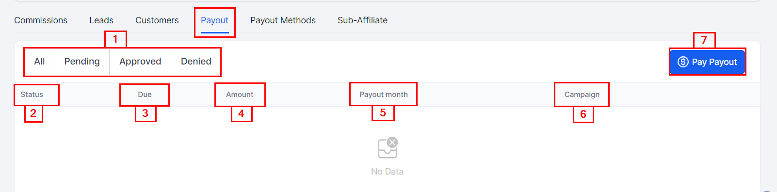Pay Payout: Seamlessly issue commissions to the affiliate by clicking this button.