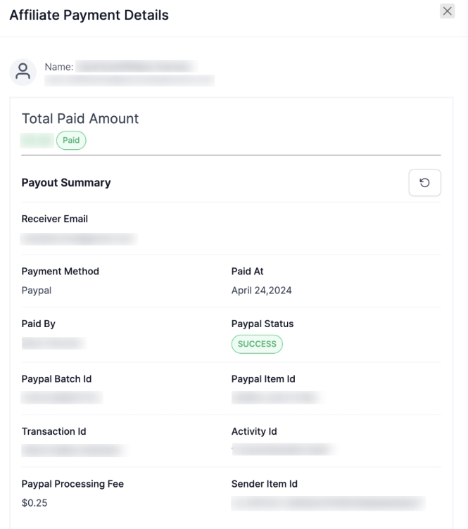 📌 Note: PayPal may require some time to process payments, during which the status may appear as "Pending." Click the refresh icon for the most recent status to be displayed.