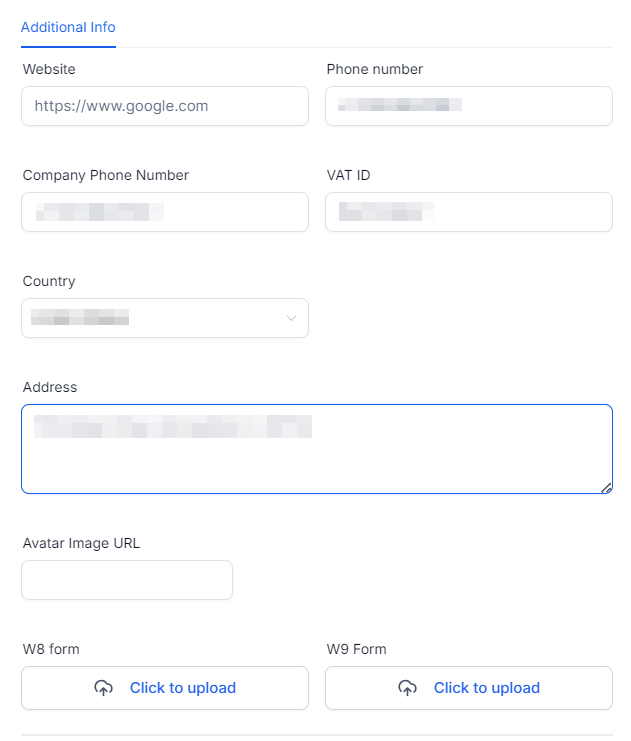 If you choose to add additional details, you can include the affiliate's phone number, VAT ID, address, or social media links. You also have the option to customize the affiliate's referral link or add a coupon code.
