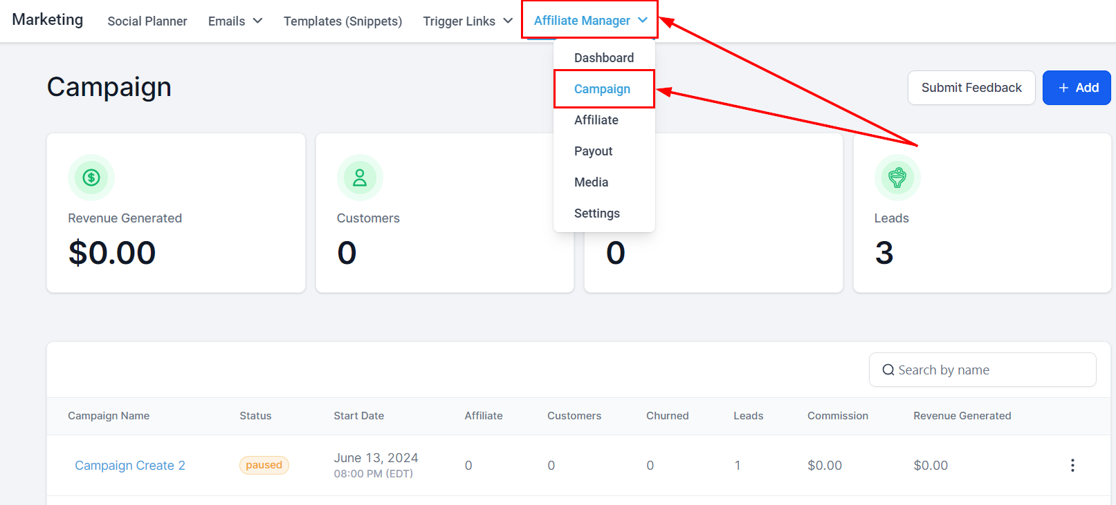 Access the Affiliate Manager: Navigate to your Affiliate Manager within the Marketing section.