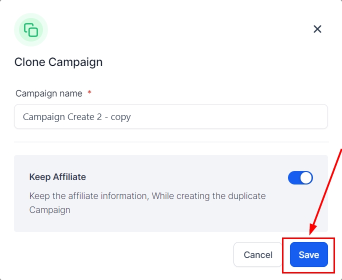 7. Save and Finish: Click "Save" to create the new cloned campaign.