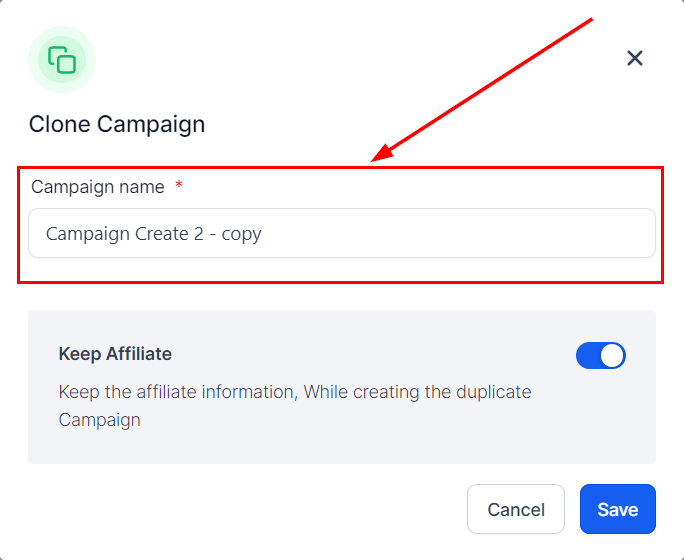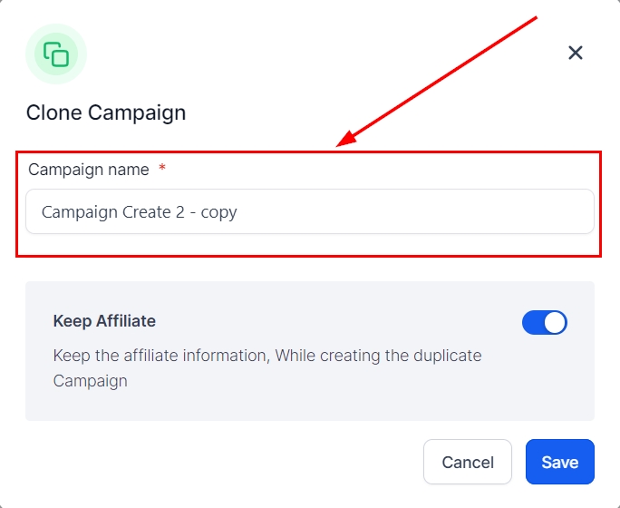 5. Rename the Campaign: Enter an appropriate name for your cloned campaign.