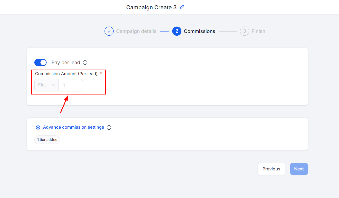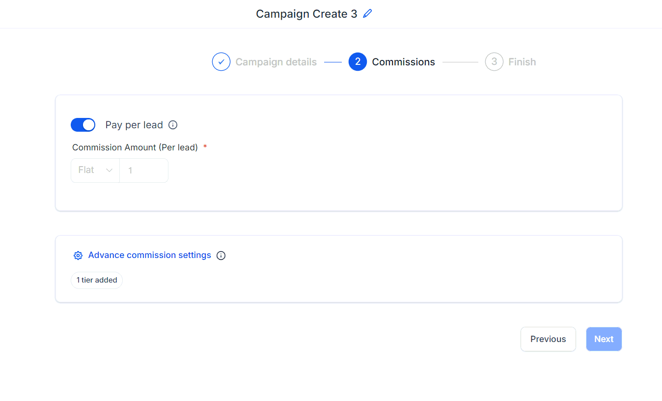 Set the commission amount affiliates will receive for each lead they generate.