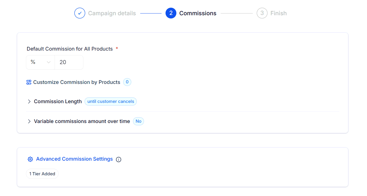Set multiple tiers for the same affiliate campaign, to divide your affiliates into different earning levels.