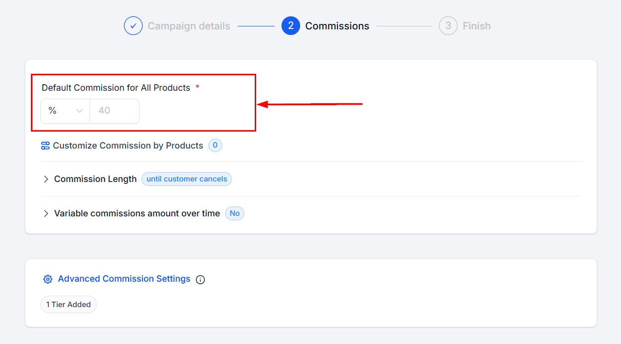 If you have multiple products you can set customized commissions for each.